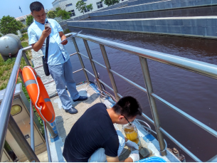 2016年06月20日,受河南省環(huán)境監(jiān)察總隊(duì)委托,鄭州市通標(biāo)環(huán)境檢測(cè)有限公司對(duì)新鄉(xiāng)市賈屯污水處理廠總排口進(jìn)行采樣,附照片如下: